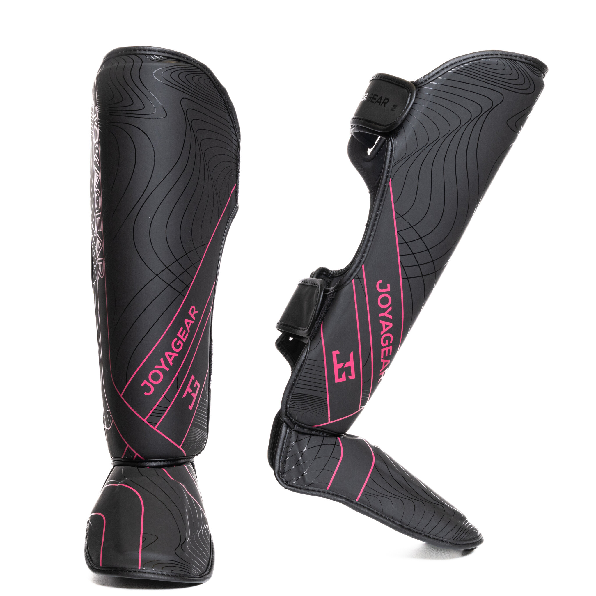 Joya Essentials Schienbeinschoner in Schwarz/Rose sind für anspruchsvolle Kickboxer konzipiert. Das hochwertige Material bietet Langlebigkeit und Schutz, während das ergonomische Design Komfort während langer Trainingssitzungen gewährleistet.