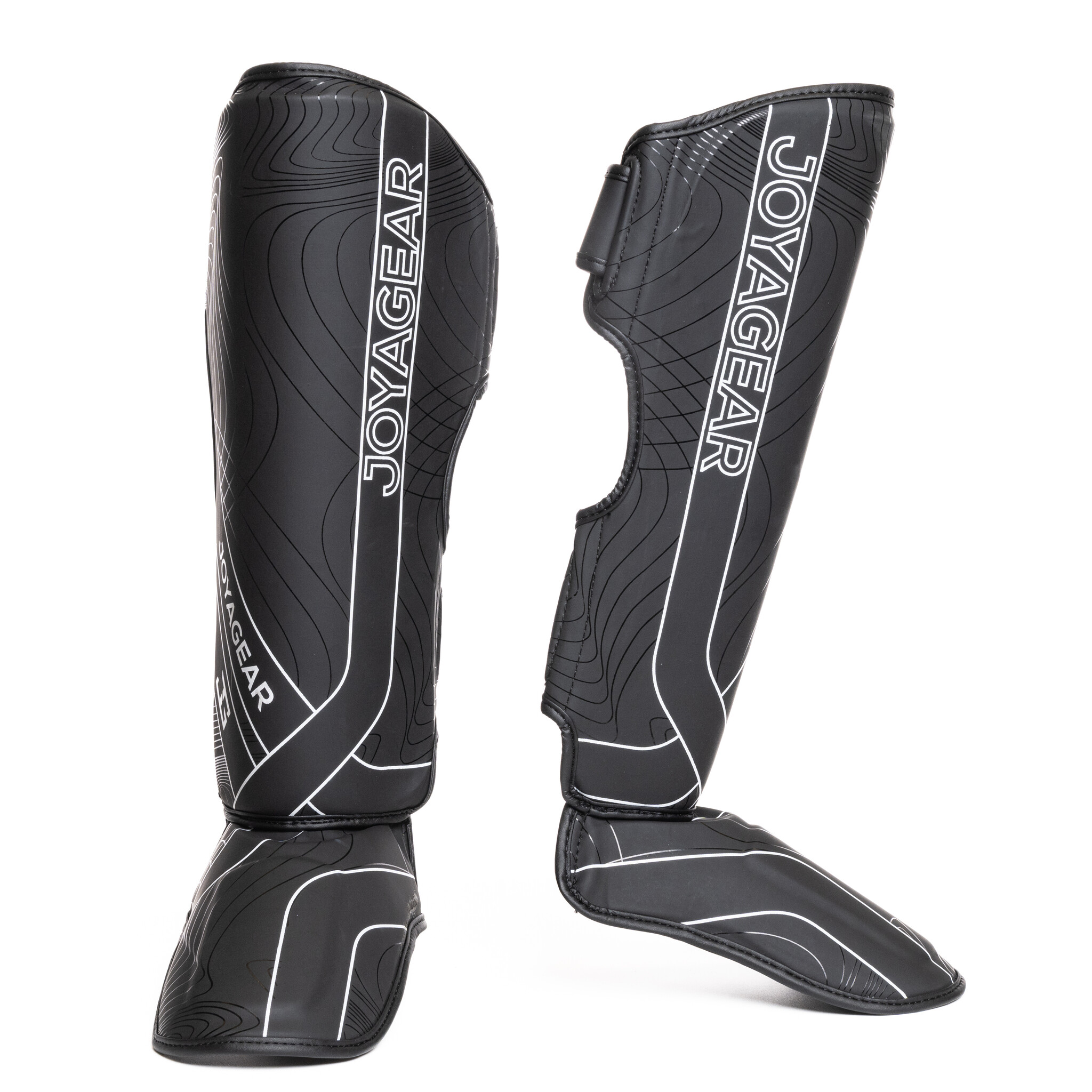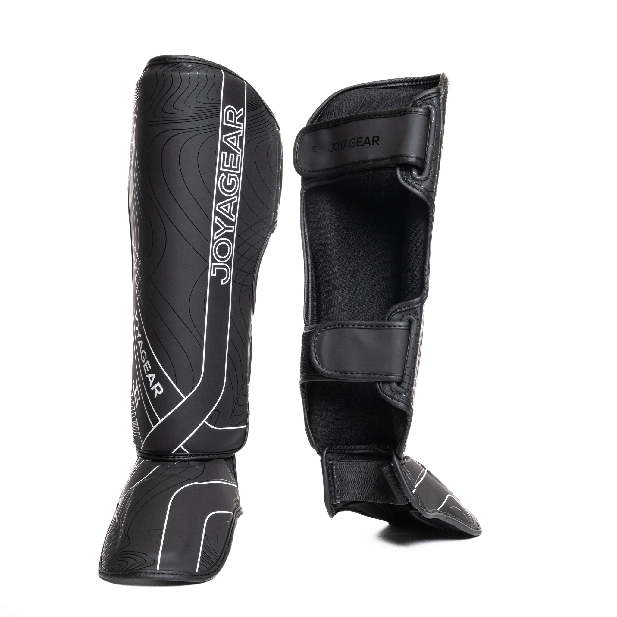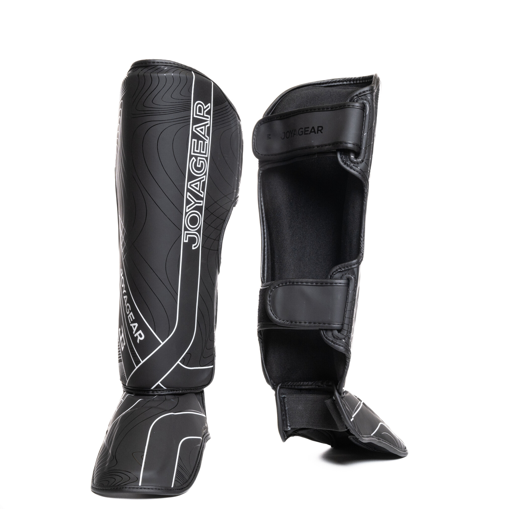 Joya Essentials Scheenbeschermers in Zwart/wit zijn ontworpen voor veeleisende kickboksers. Het hoogwaardige materiaal biedt duurzaamheid en bescherming, terwijl het ergonomische ontwerp zorgt voor comfort tijdens lange trainingssessies.